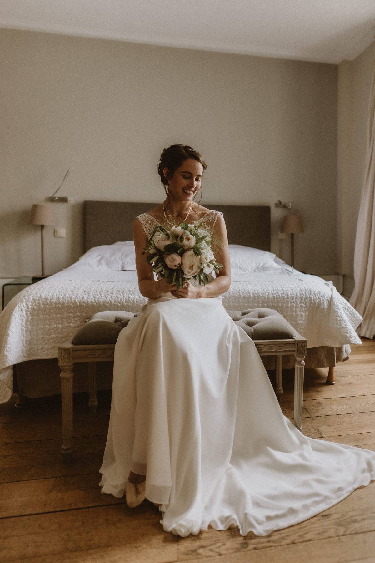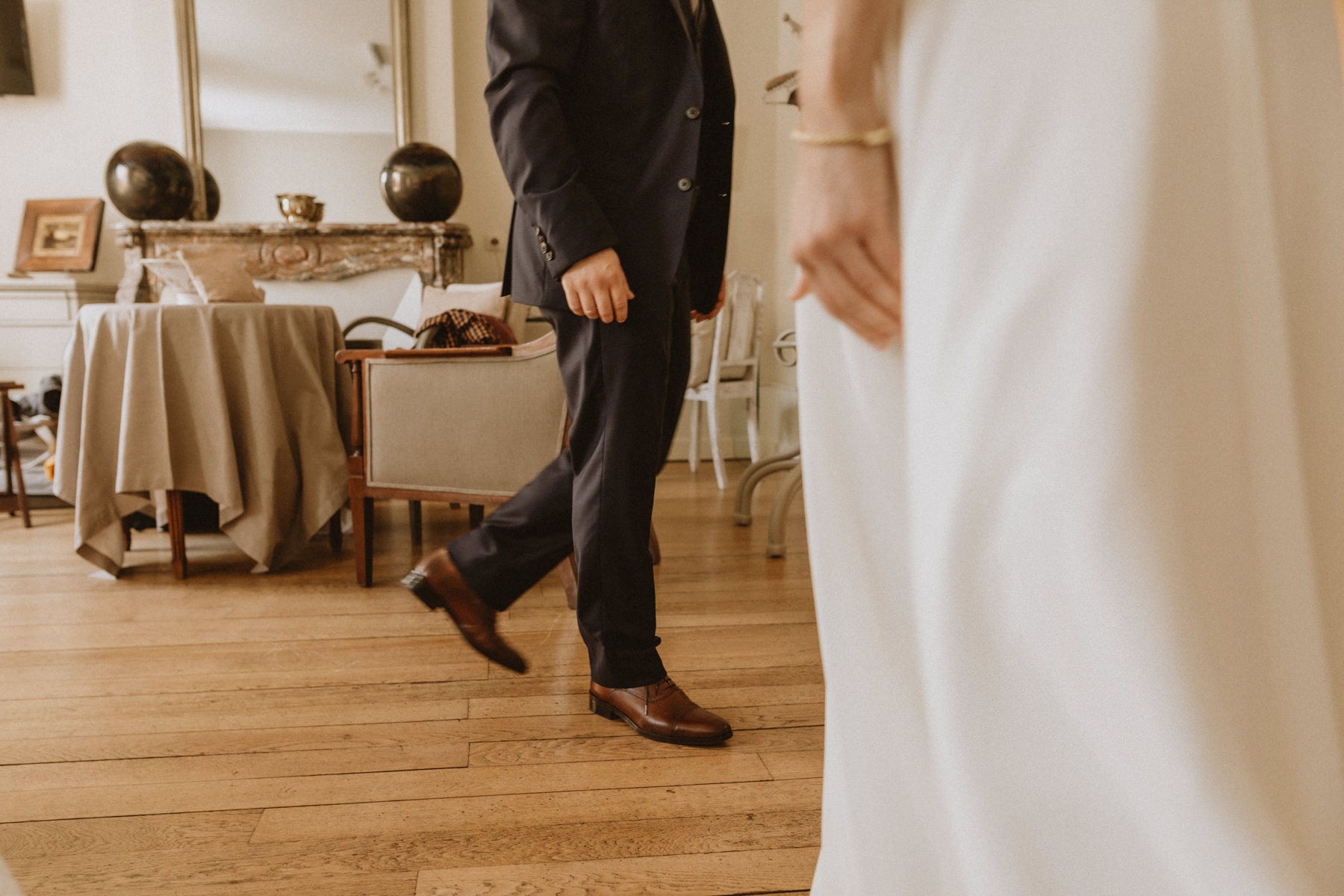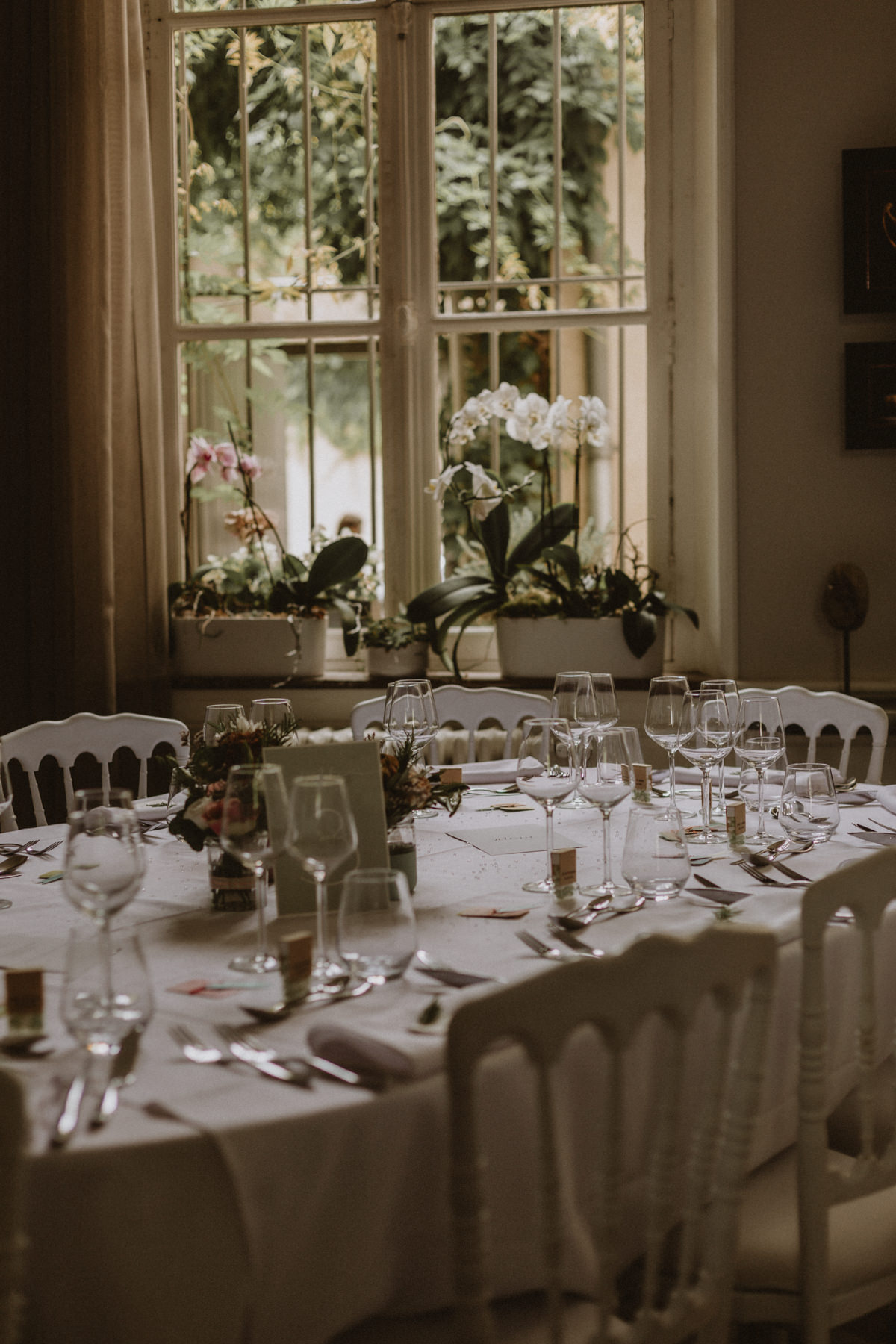 Marie et Adrien ont donc entièrement privatisé la Maison de Myon et investi chaque espace pour organiser leur mariage dans ce lieu idyllique. Avec leurs proches, ils ont occupé les cinq chambres, les anciennes écuries transformées en bibliothèque, les trois salons et la grange aménagés en lieu de réception. Ils ont également pu bénéficier de la cour pavée verdoyante, véritable havre de sérénité au cœur du tumulte citadin.